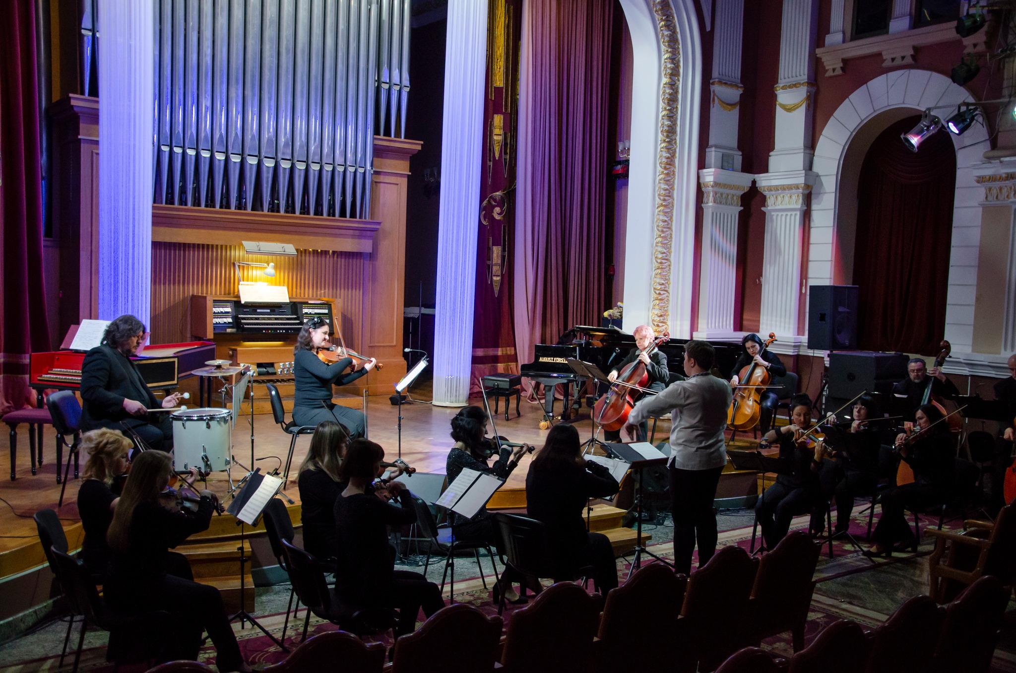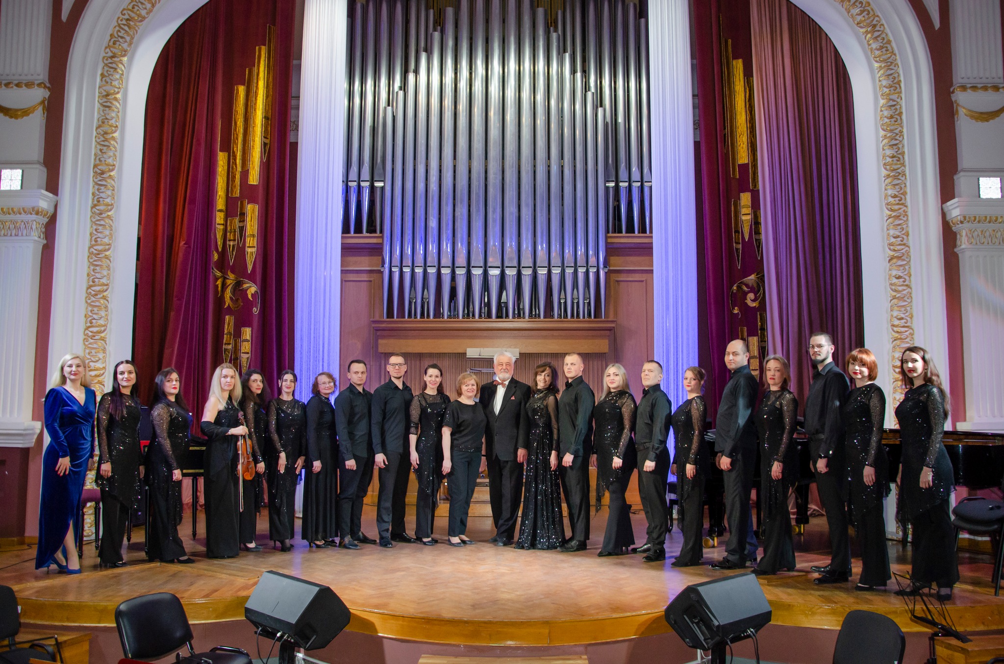 За органом – заслужений працівник культури України Орест КОВАЛЬ, на сцені – заслужена артистка України Тетяна ЛАСТОВЕЦЬКА (сопрано), камерний оркестр старовинної та сучасної музики «РЕНЕСАНС»(диригент – Євген ЗОЛОТУХІН), Олена АНТОНЕЦЬ (клавесин), Лариса МУХІНА (сопрано), мішаний хор колективів «СЛОБОЖАНСЬКІ БАРВИ», «ЕЛЕГІЯ» та солістів філармонії.